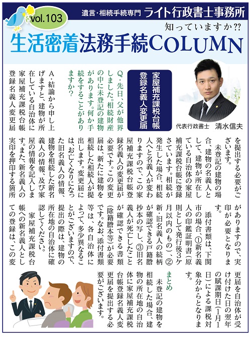 Vol.103 家屋補充課税台帳登録名義人変更届