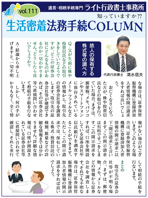 Vol.111 故人の保有する株式等の調べ方