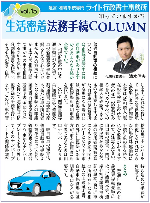 Q 相続財産の中に普通自動車がありますが、どのような手続が必要ですか。