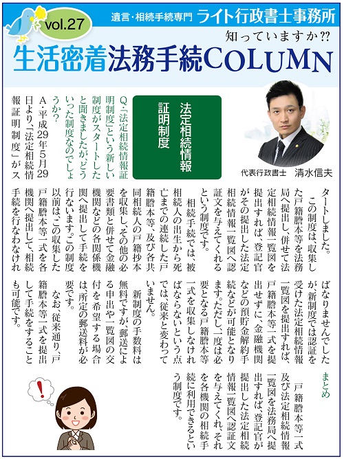 Q 「法定相続情報証明制度」という新しい制度がスタートしたと聞きましたが、どういった制度なのでしょうか?