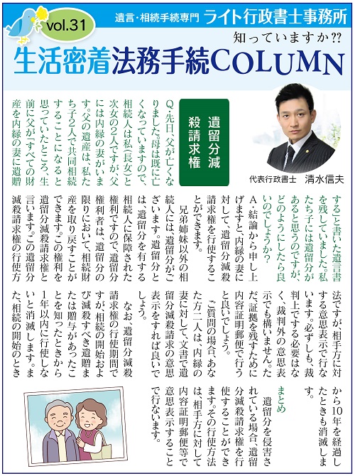 なお、遺留分減殺請求権の行使期間ですが、相続の開始および減殺すべき遺贈または贈与があったことを知ったときから1年以内に行使しないと消滅します。また、相続の開始のときから10年を経過したときも消滅します。