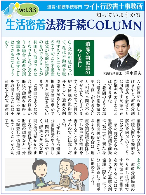 A 結論から申し上げますと、遺産分割協議をやり直すことは可能ですが、第三者の権利を害することはできません。