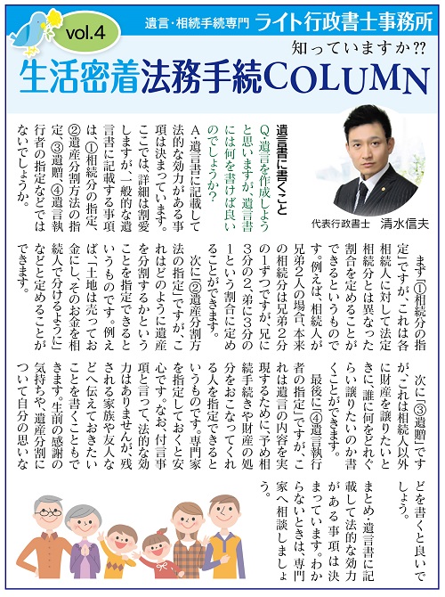 Q 遺言を作成しようと思いますが、遺言書には何を書けば良いのでしょうか?