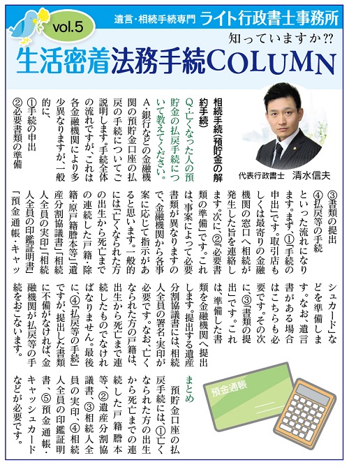A 銀行などの金融機関の預貯金口座の払戻の手続についてご説明します。