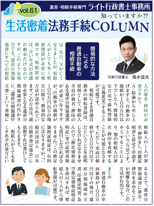 Vol.61 簡易的な方法による普通自動車の相続手続