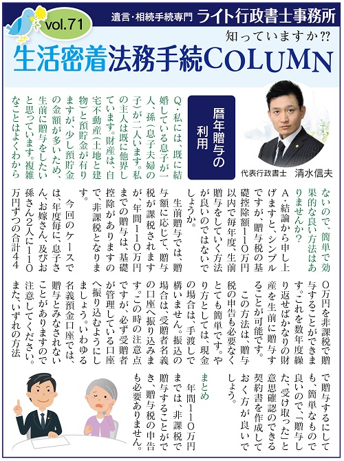 Vol.71 暦年贈与の利用