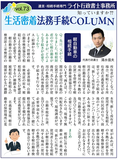 Vol.73 軽自動車の相続手続