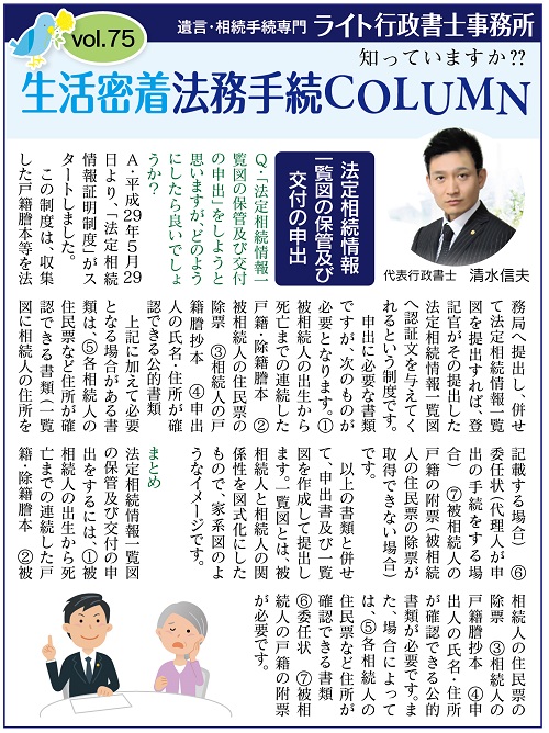 Vol.75 法定相続情報一覧図の保管及び交付の申出